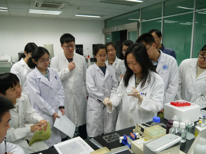 本次培训课程采用理论和实际操作并重的教学方法,采取分组式授课方式,每组20人左右,使每位学员充分参与其中。通过五天的系统培训,学员学到了分子生物学(核酸提取、PCR技术、Western技术)、细胞生物学(细胞培养、流式细胞术)、组织化学(冰冻切片、石蜡切片、HE染色)等相关理论知识和实验技术。