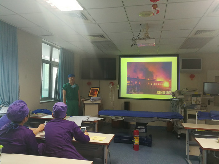2017年3月3日早7点30分,我院手术室视教室内座无虚席,大家正在认真地观看国产电影《逃出生天》中关于火灾发生和撤离火灾现场的经典桥段,原来,这是手术室工会正在进行消防知识的培训。影片片段播放之后,护士长,分会主席组织大家就之前发生在吉林某医院特大火灾的原因及应急措施进行了讨论,让大家在实际例子中总结可以吸取的经验教训。