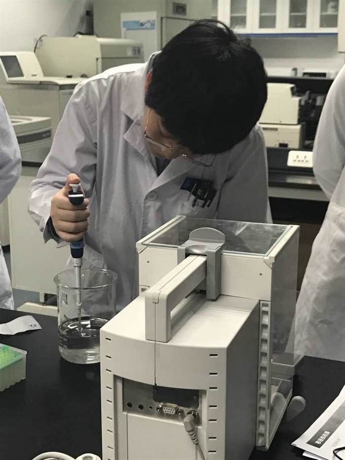 在讲解后的挑战赛中参加人员分为两组,由学员队挑战实验室老师队,将气氛推入高潮。实验挑战后进行了讲解与评价,对大家操作不规范的地方进行了纠正,通过此次活动,每个人都得到了提高,知道了移液准确对于实验结果的重要性。