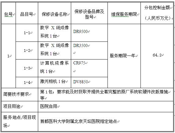 北京天坛医院DR等设备维保服务项目招标公告