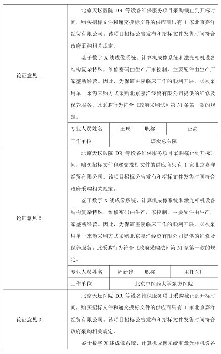 北京天坛医院DR等设备维保服务项目单一来源采购公示