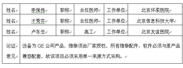 经专家论证:设备为GE公司产品,维修须由厂家授权,所有维修配件、软件必须与原产品兼容配套,故该项目必须采用单一来源方式采购。