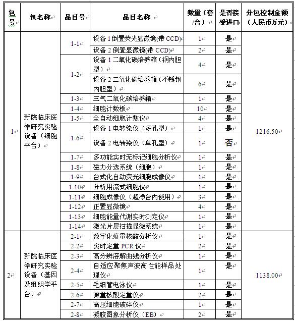 新院临床医学研究实验设备-分项1的招标公告【编号:0701-174160100255】