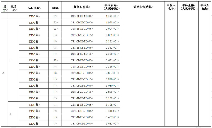 九、包号、品目号、包名称、数量、规格和型号、中标单价、简要技术要求、中标人名称、中标金额、中标人地址
