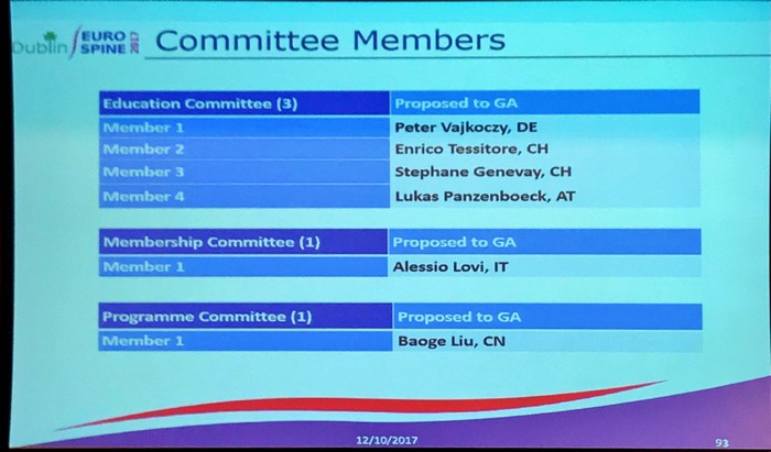 2017年10月11-13日,欧洲脊柱学会在爱尔兰首都都柏林召开为期三天2017年欧洲脊柱年会(Eurospine2017),首都医科大学附属北京天坛医院刘宝戈教授连任Eurospine委员,并全票当选新一届学术日程委员会委员(Scientific Programme Committee Member)。