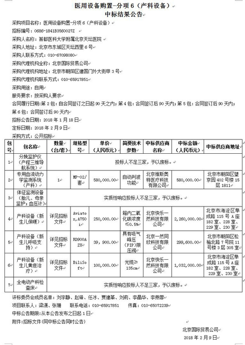 北京天坛医院医用设备购置-分项6(产科设备)中标结果公告【编号:0686-1841B3560027Z】