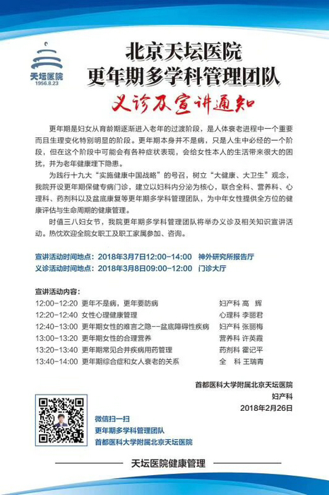 北京天坛医院更年期多学科管理团队义诊及宣讲通知