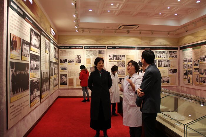 在协和医院工作人员的讲解下,大家依次参观了讲述北京协和医院95年发展历程的五个展厅,整个院史馆通过大量珍贵的实物、老照片及详实的文字,诉说着协和近百年的发展历程和沧桑变化,阐释了协和建院至今保持高水平、高标准的厚重渊源。最后,大家还参观了“协和泰斗 一代名师”张孝骞诞辰120周年图片展,感受到了一代名医张孝骞教授把精湛的医术作为自己不懈的追求,把对病人的关爱和无私的奉献视为自己毕生修行的老一辈科学家的优良传统和品格风范。
