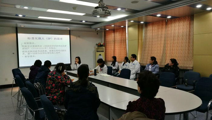 随后在教育处的牵头下,SP导师对这5位预备SP进行了第一课的培训,主要内容涉及SP相关的基础知识、医学知识。教育处还将安排其他数个模块的课程学习,包含模拟医学知识、OSCE考站知识、表演、化妆、评价、反馈等。本批次5位标准化病人自身素质较高,皆有良好的教育背景及工作经历,该5人皆为大学及以上学历,职业多为教师及企事业单位行政人员,其中一人还具备丰富的表演经历。同时他们具有出色的沟通能力,言谈举止得体,有一定的表现力。