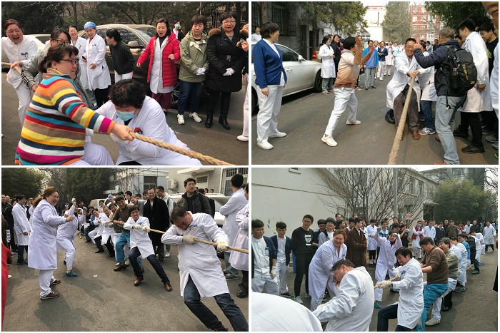 “哔”,随着一声哨响,2018年北京天坛医院春季全民健身活动之拔河比赛于3月14日中午在院区内拉开序幕。 此次比赛共有男子25支队伍、女子31支队伍参赛。比赛过程精彩纷呈,参赛队伍斗志昂扬、奋力拼搏,啦啦队助威声呐喊声此起彼伏,声势振人,现场气氛紧张热烈。最终外科、神外、总务、神内、临二等获得男子组优胜奖,ICU、财务、妇产、医政、神内、神外等获得女子组优胜奖。