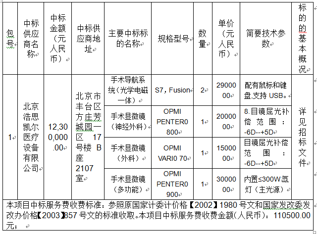 北京天坛医院医用设备购置-分项16(神经外科手术设备)中标公告