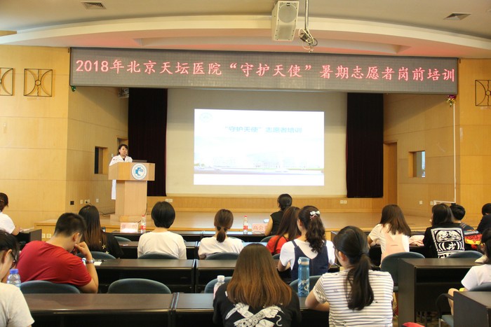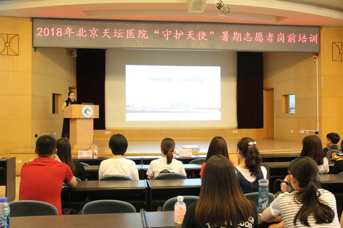 今年3月,我院“守护天使”门诊导医志愿服务项目被首都精神文明建设委员会命名为第三批“首都学雷锋志愿服务岗”。暑期来临之际,院团委通过团体对接的方式,从北京卫生职业学院招募了53名导医志愿者。为帮助志愿者们尽快熟悉医院、更好地胜任志愿服务工作,7月19日下午,院团委联合门诊部对志愿者进行了岗前培训。